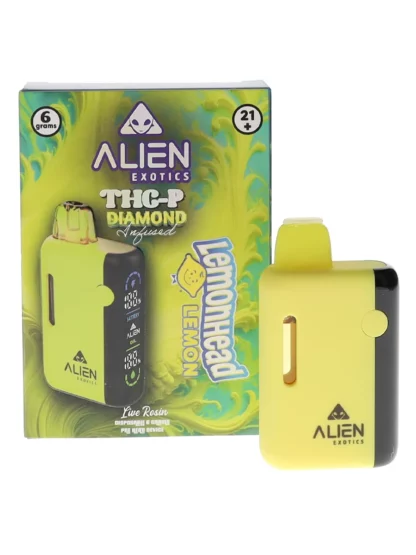 Order the Lemonhead Lemon Alien Exotics THC-P Diamond Infused Live Rosin Disposable 6G today from our online shop, and enjoy a refreshing, citrusy vaping adventure!